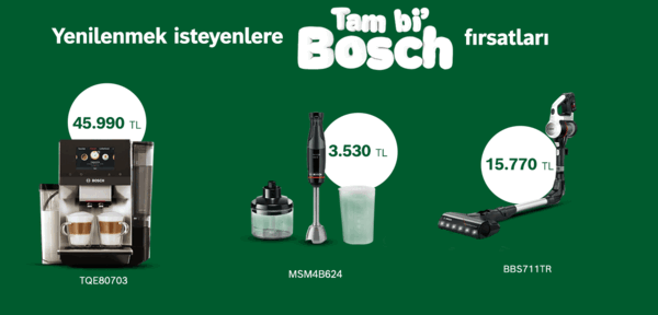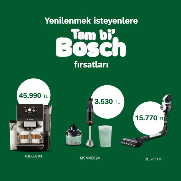 Seçili küçük ev aletlerinde kaçırılmayacak fırsatlar sizi bekliyor. Siz de bu kampanyadan faydalanarak evinizde Bosch ürünlerinin keyfini çıkarın.*