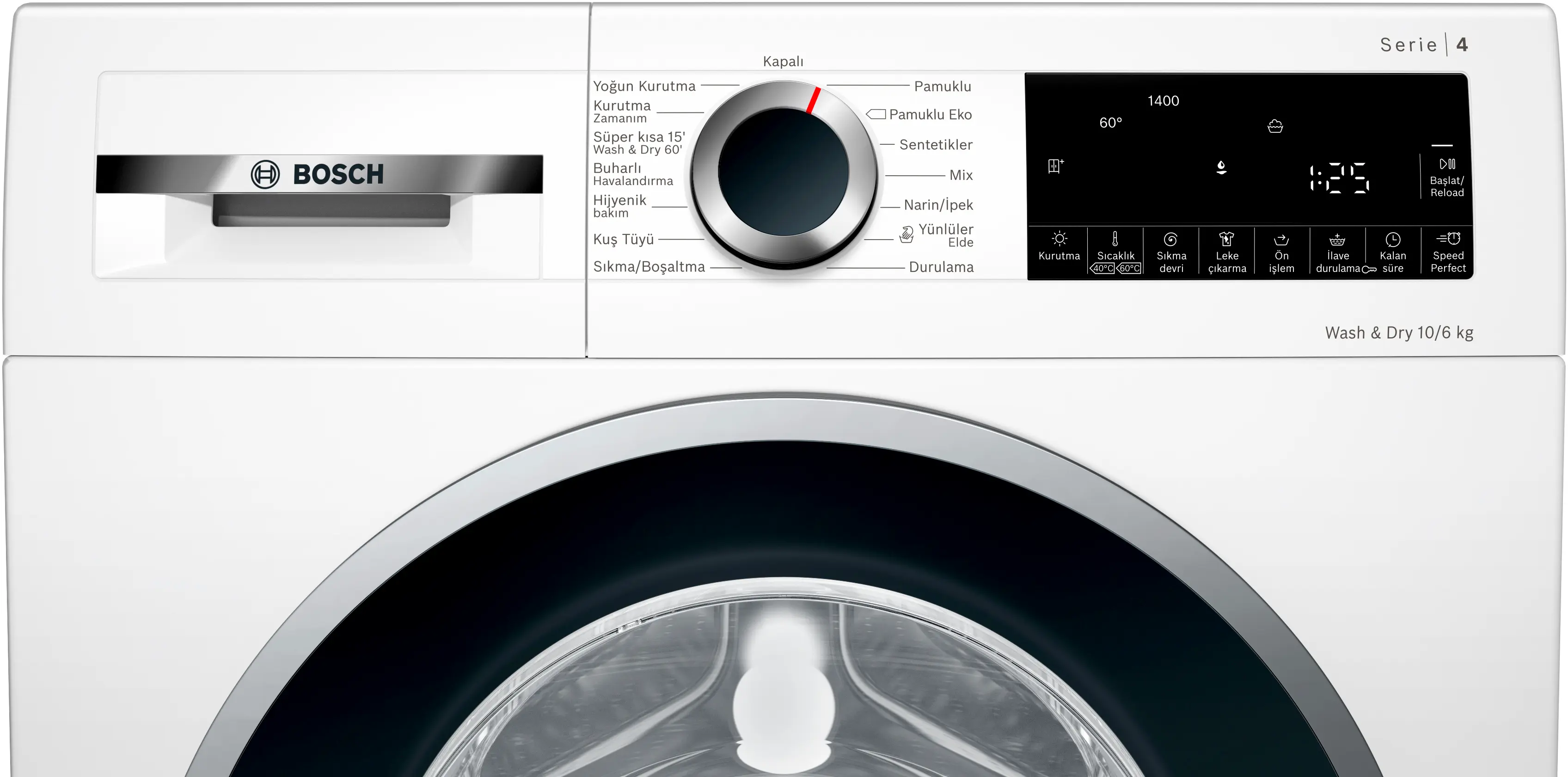 Yıkama ve kurutma programında döngü başına maksimum kapasite