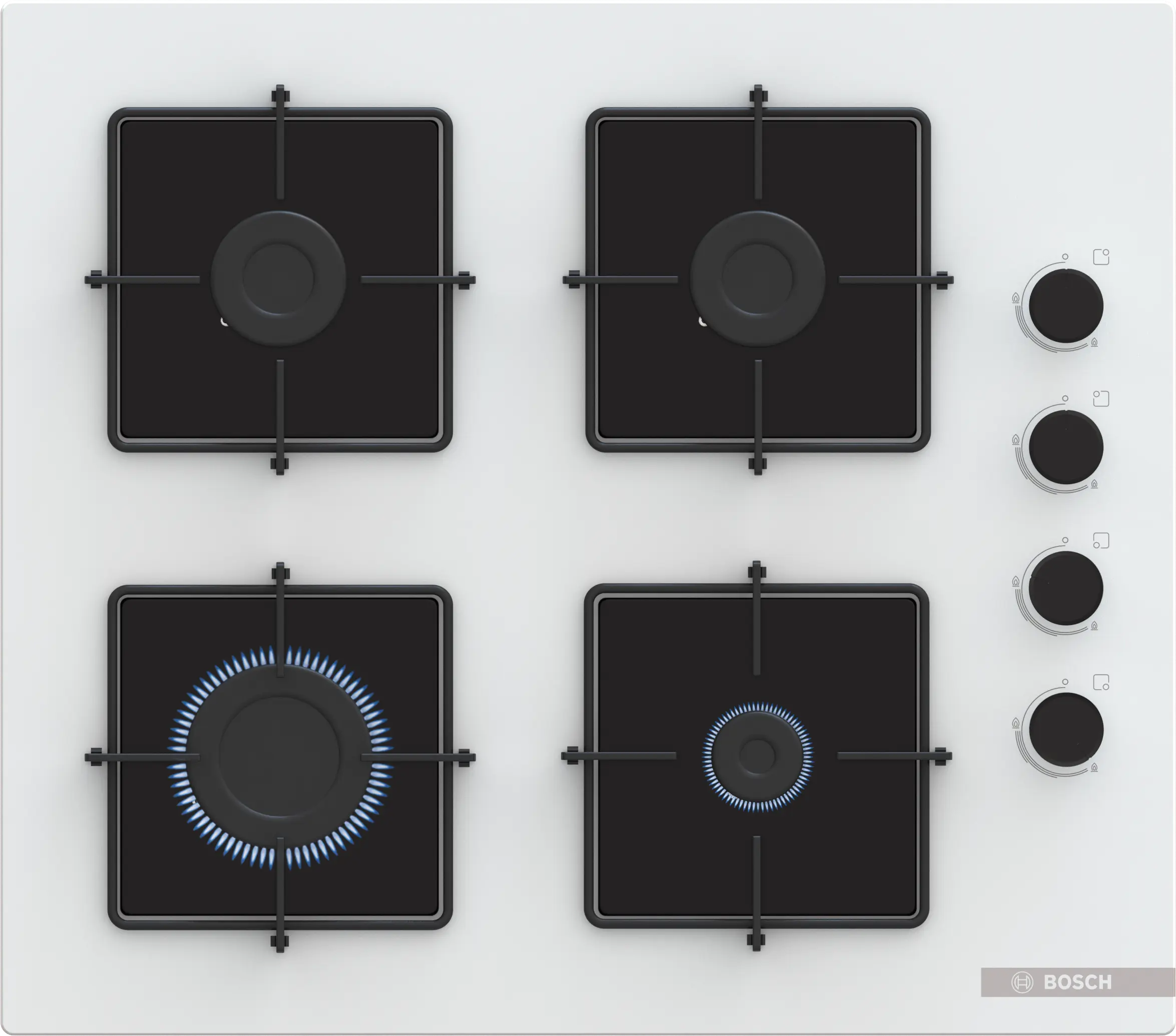 Serie 4 Gazlı Ocak 60 cm Sert cam, BeyazPOP6C2P30O