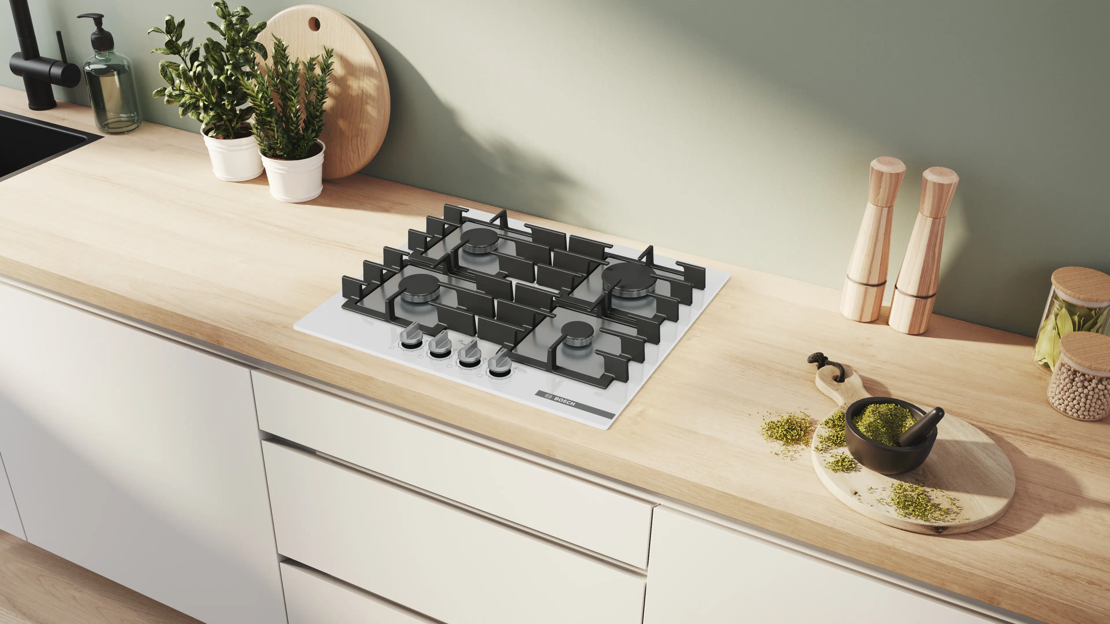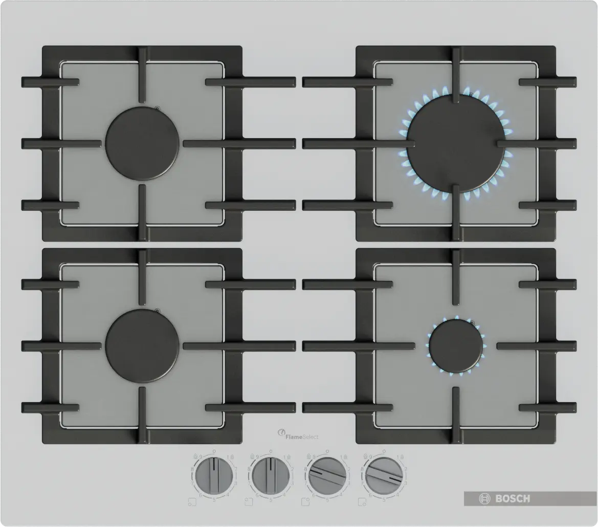 Serie 6 Gazlı Ocak 60 cm Sert cam, BeyazPPP6A2I40O